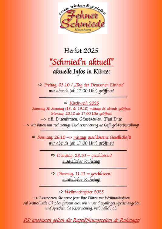 Bis dahin bitte über facebook oder telefonisch informieren -