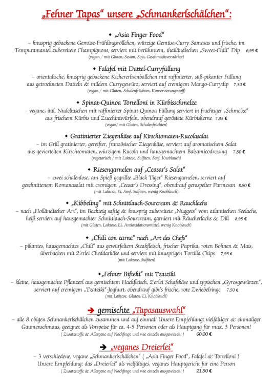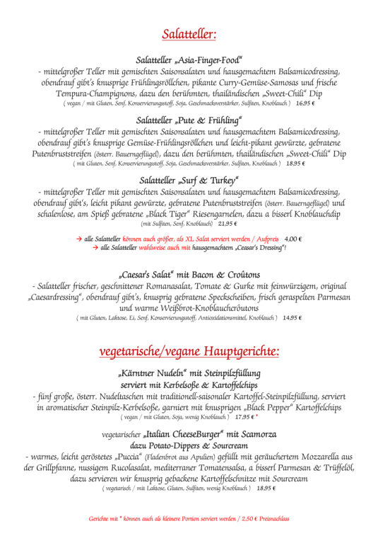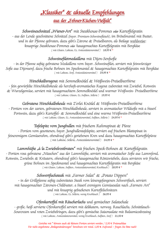 Möglicherweise werden zu Ihrem Besuch manche Gerichte & Preise variiert haben!